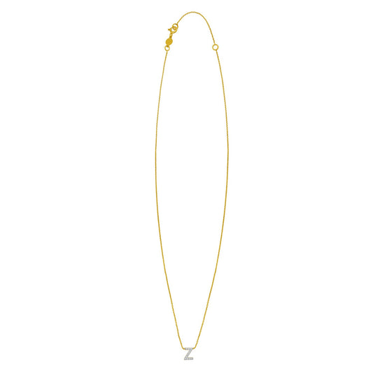 14K Yellow Gold Mini Diamond Z Initial Pendant Necklace