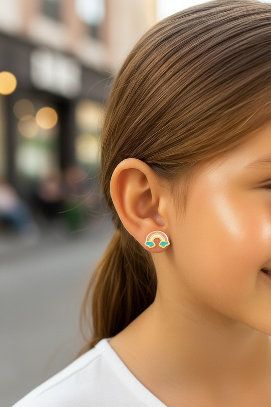 14k Yellow Gold Enameled Unicorn Childrens Earrings