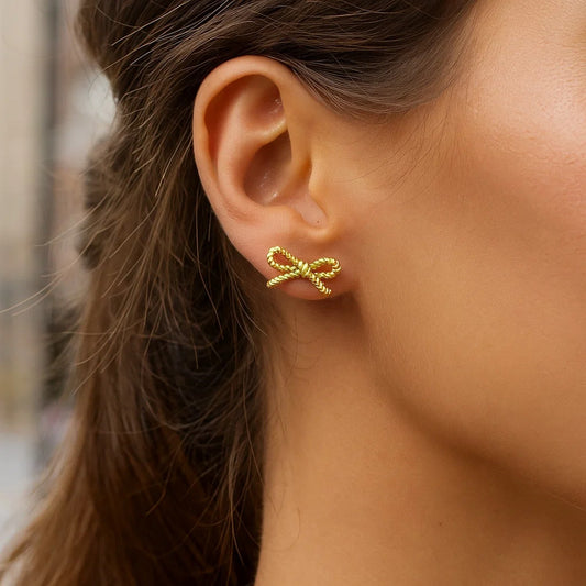 14K Yellow Gold Twisted Rope Large Bow Earrings