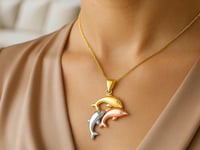 Pendant with Three Dolphins in 10k Tri Color Gold