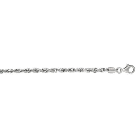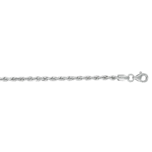 14k White Gold Solid Diamond Cut Rope Bracelet (2.50 mm)