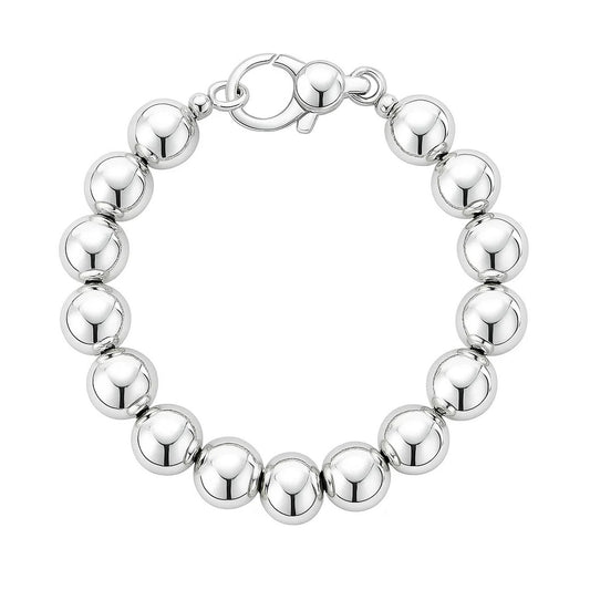 Rhodium Plated Sterling Silver Bold Bead Bracelet (10.00 mm)