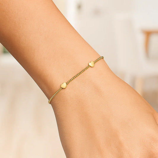 14K Yellow Gold Heart Station Bead Bracelet