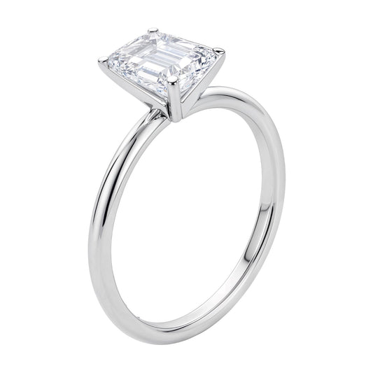 1 1/2 Carat Emerald Lab Grown IGI G/VS1 Diamond Solitaire Ring in 10K White Gold