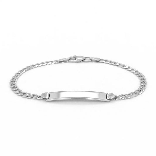 14k White Gold Curb Link Chain Polished Childrens ID Bracelet (3.00 mm)