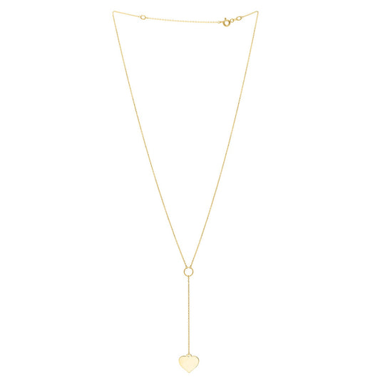 14k Yellow Gold Double Strand Chain with Puffed Heart Lariat Necklace