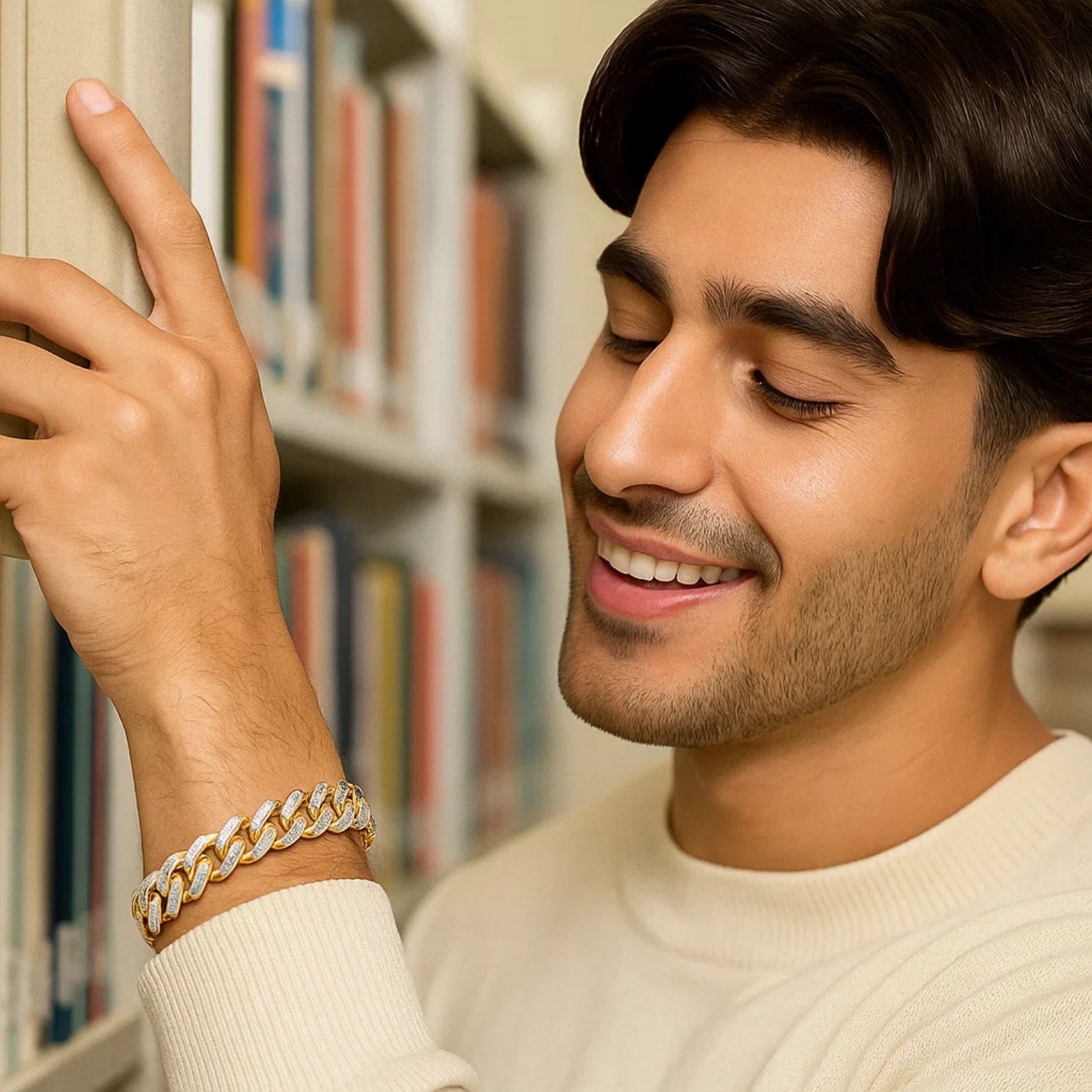 14k Two Tone Gold 8 1/2 inch Curb Chain Bracelet with White Pave (11.50 mm)