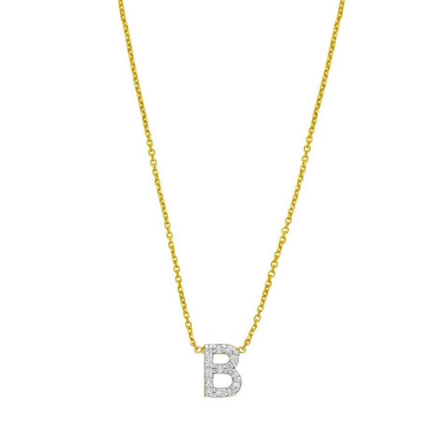 14K Yellow Gold Mini Diamond B Initial Pendant Necklace