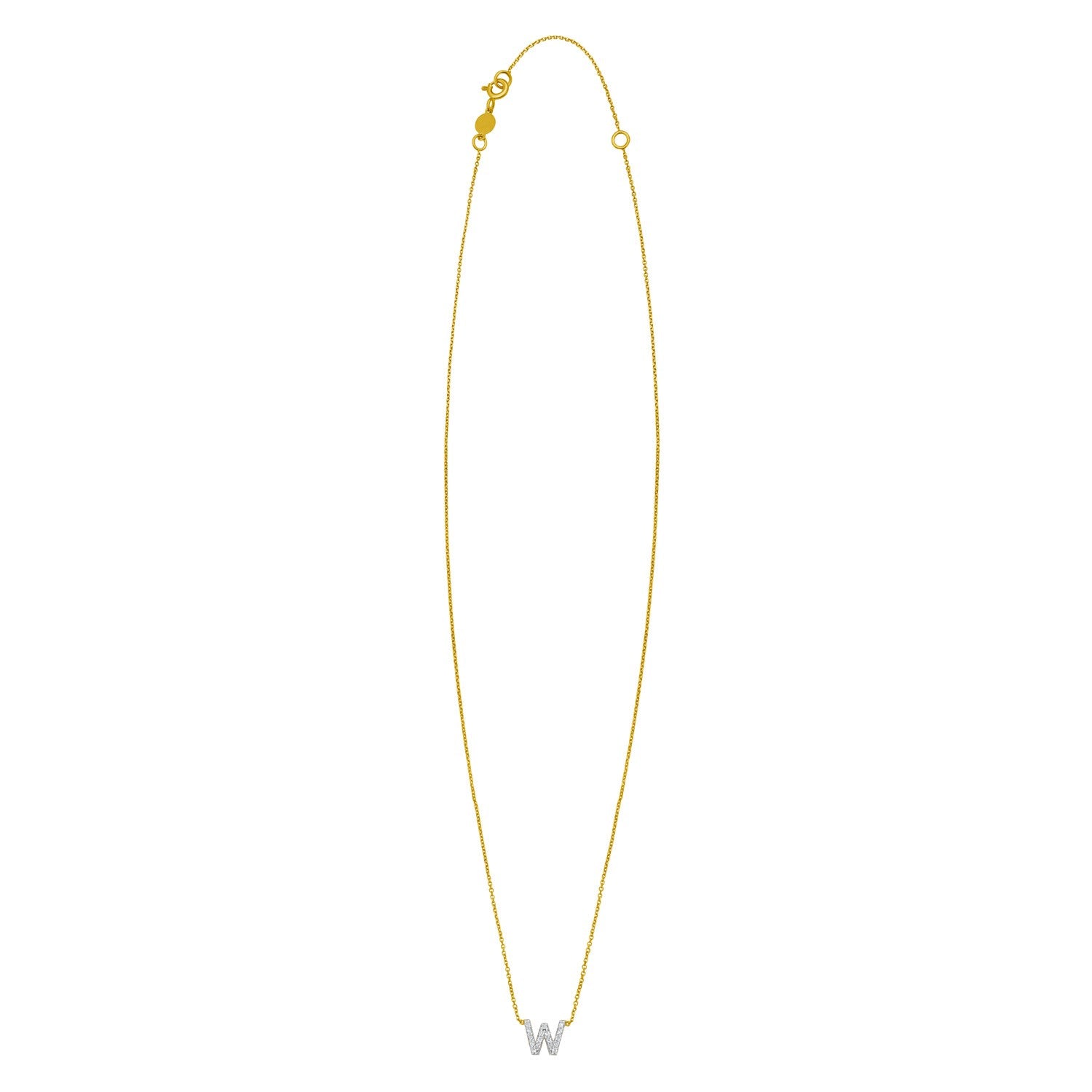 14K Yellow Gold Mini Diamond W Initial Pendant Necklace